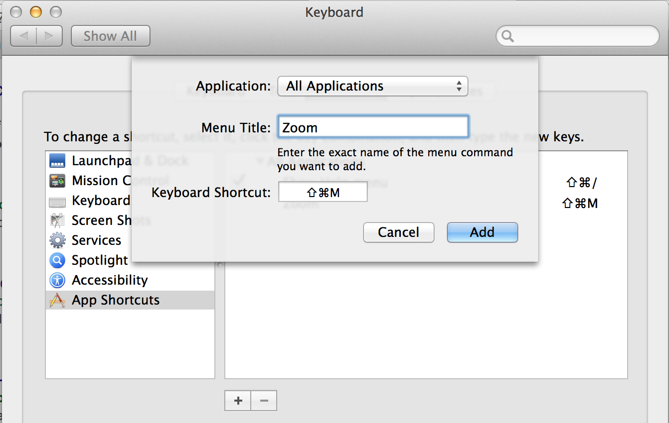 How many of you have wished that you could maximize your window size without having to drag your mouse around to the green button on the title bar. You will have to make your own keyboard shortcut for this one, since it isn’t set by default. This post aims to show you how this can be done.